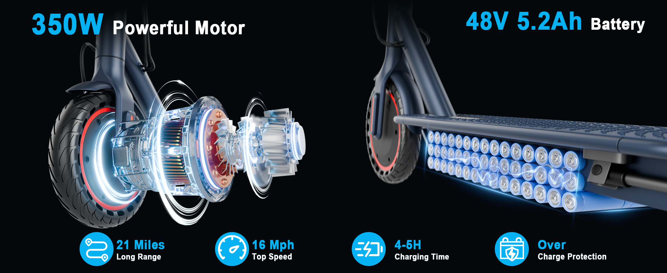 Improve your visibility with the front LED light and braking rear lights,illuminating your path ahead